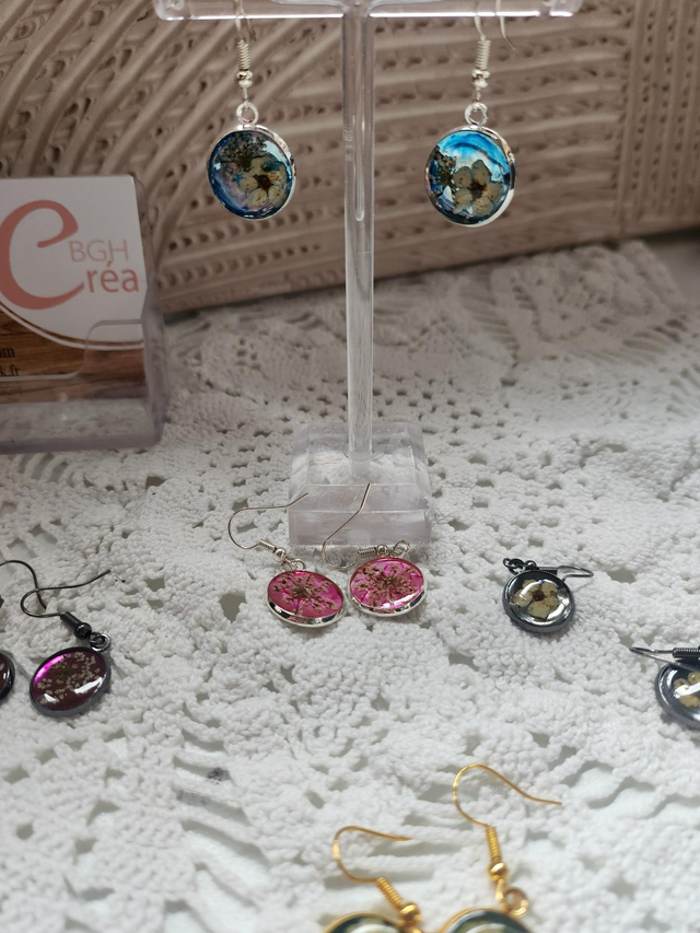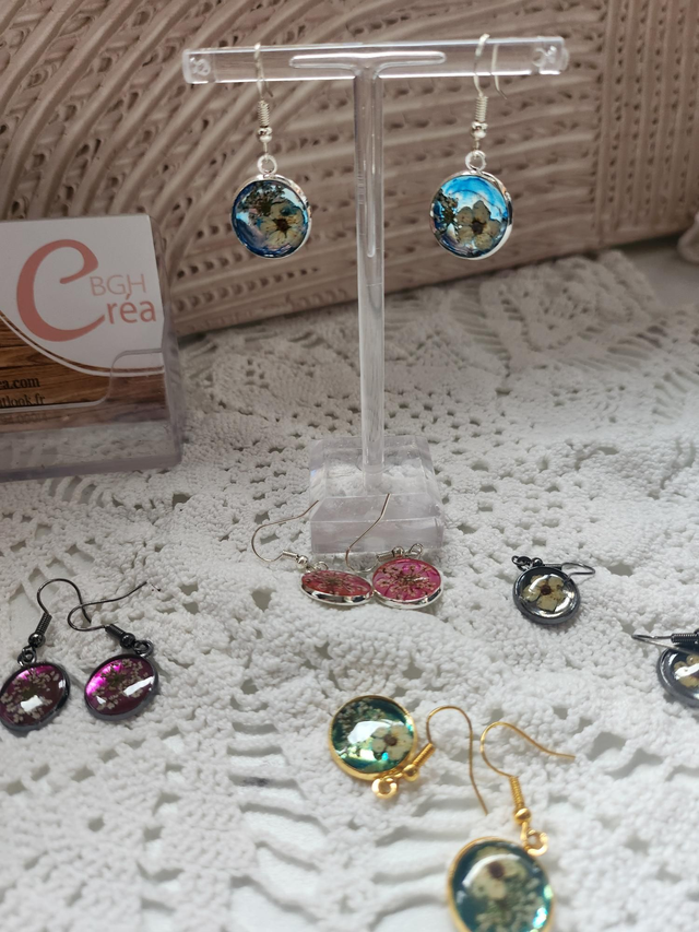 Boucles d'oreilles en résine et fleurs séchées blanches