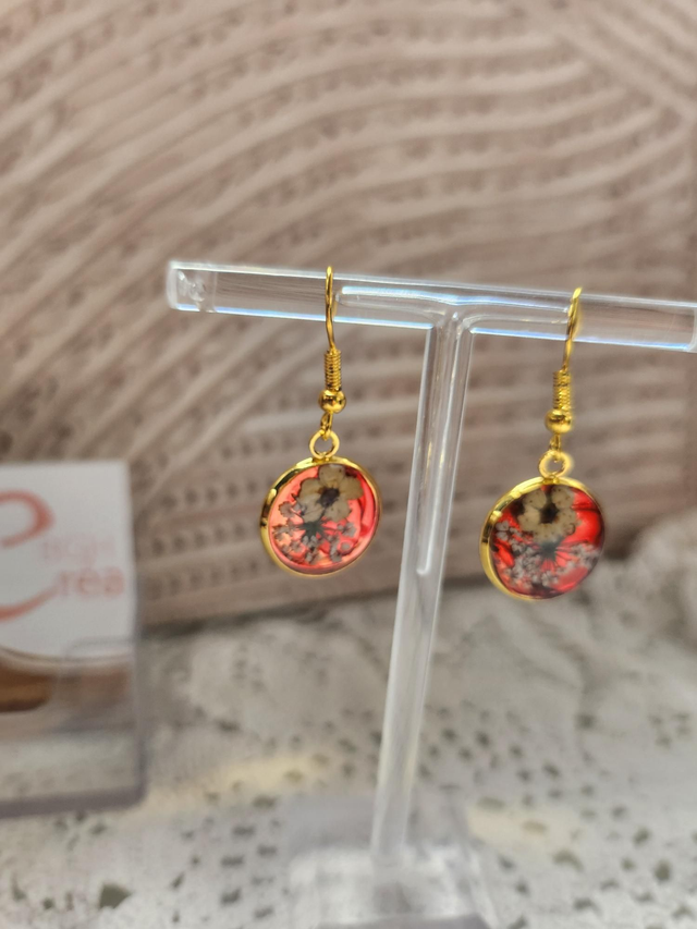 Boucles d'oreilles fleurs fond rose et or