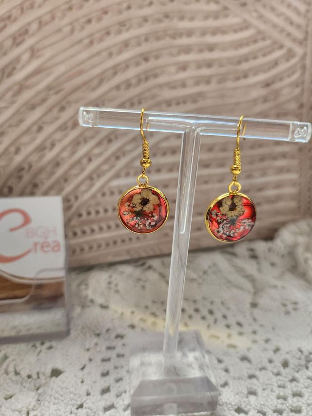 Boucles d'oreilles en résine et fleurs séchées blanches