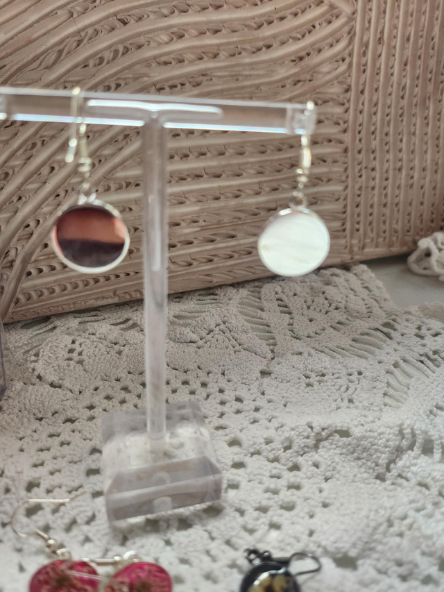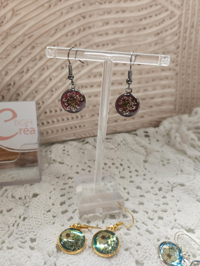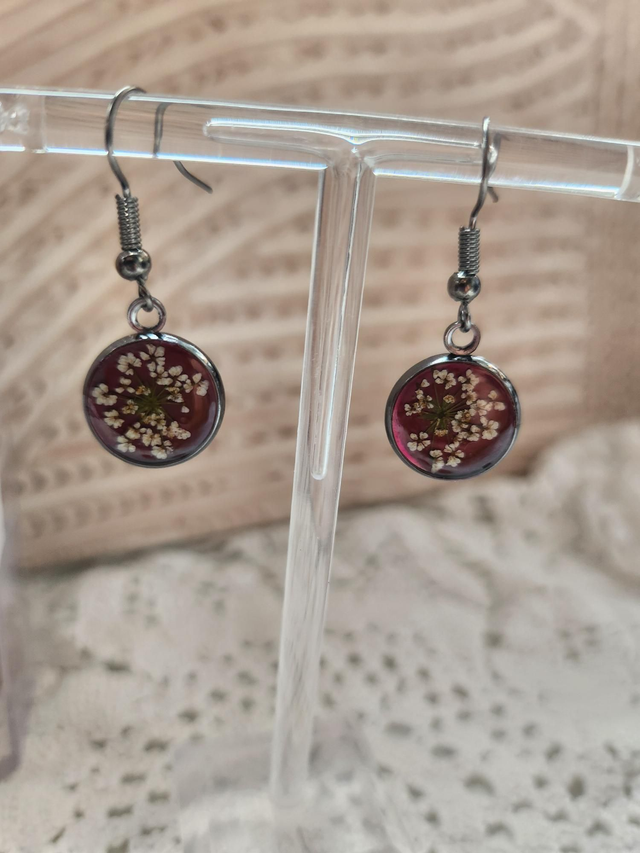Boucles d'oreilles en résine et fleurs séchées blanches