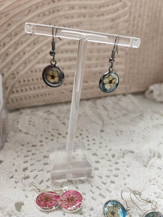 Boucles d'oreilles en résine et fleurs de spirée séchées