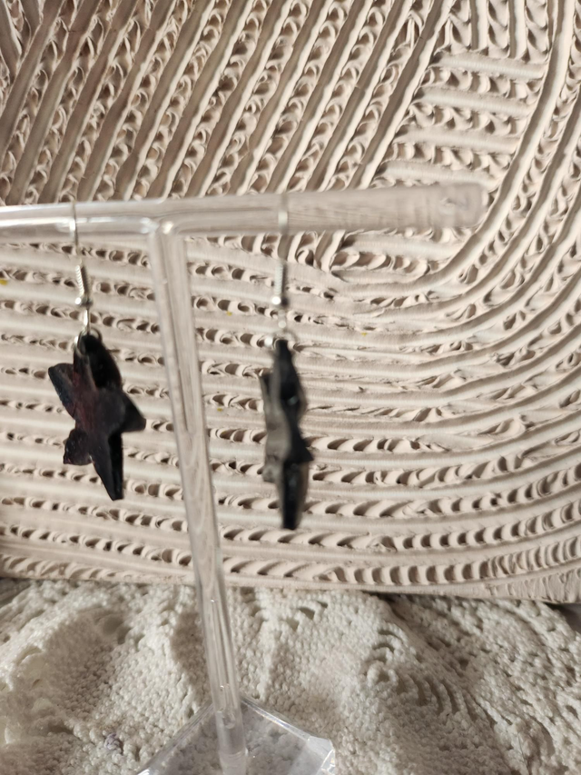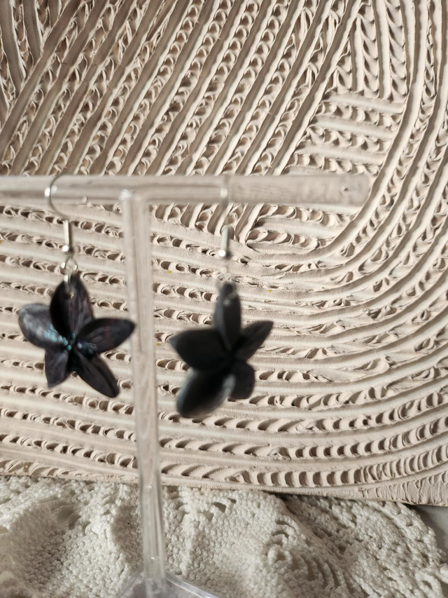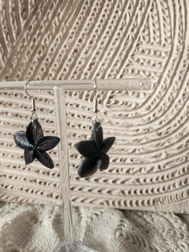 Boucles d'oreilles noires fleurs de tiares en résine.
