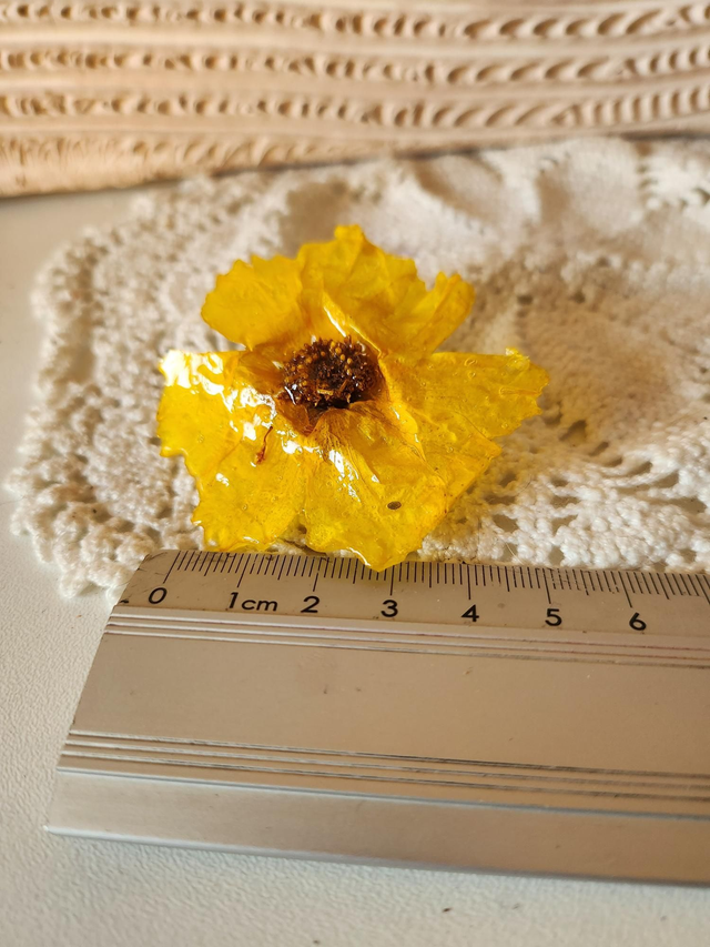 Broche en résine fleurs séchées coreopsis jaune