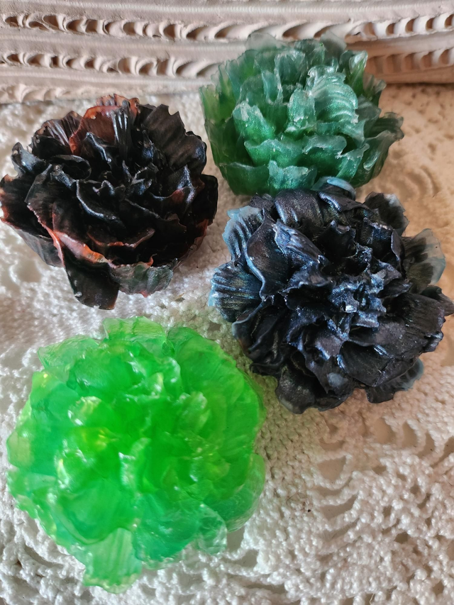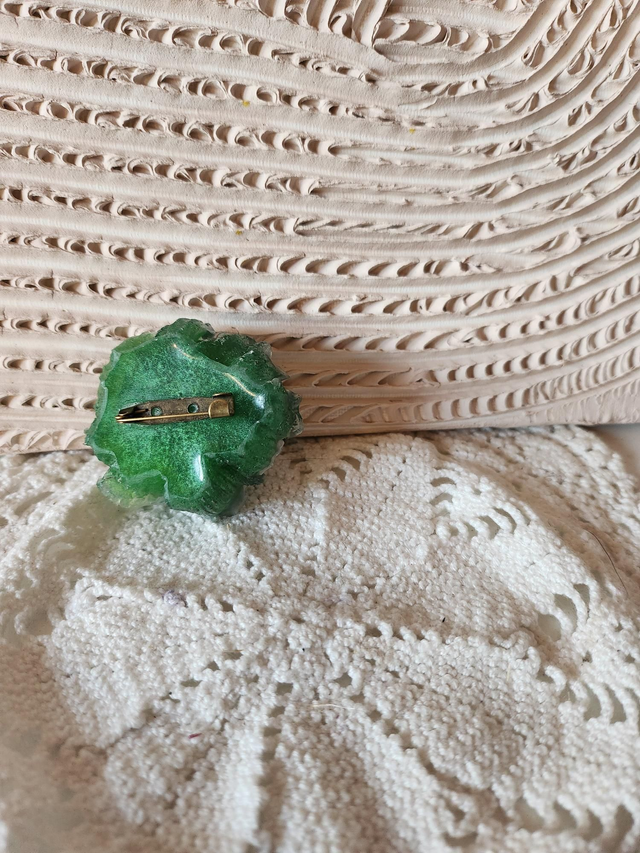 Broche en résine pivoine verte foncée