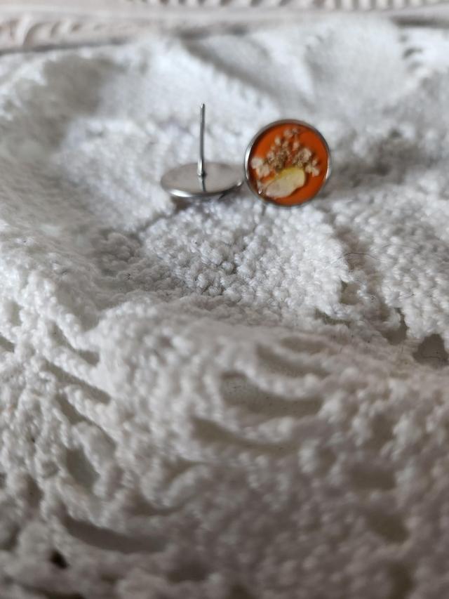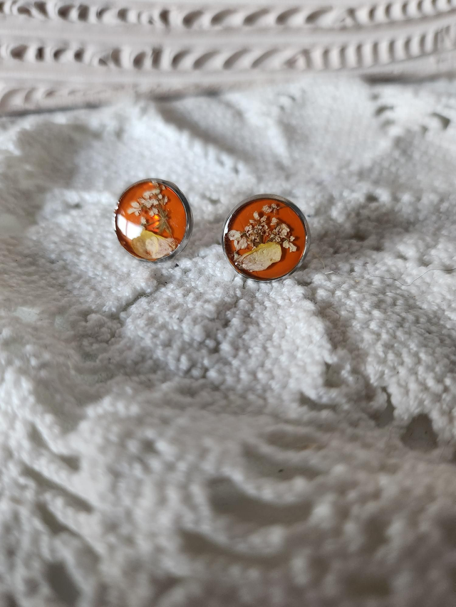 Boucles d'oreilles fleurs séchées résine fond orange