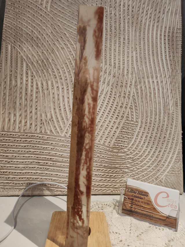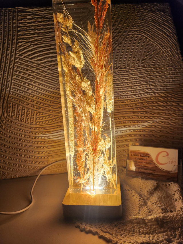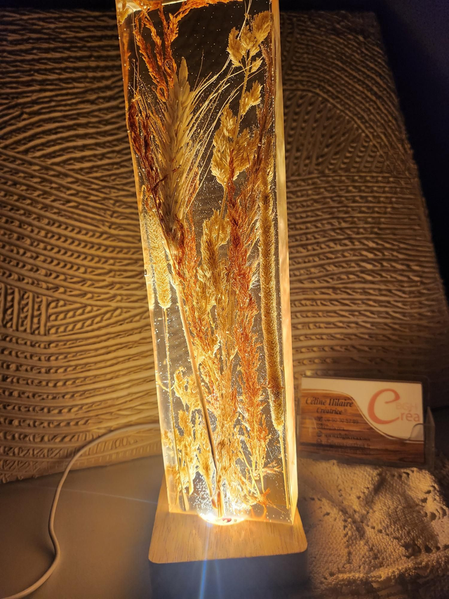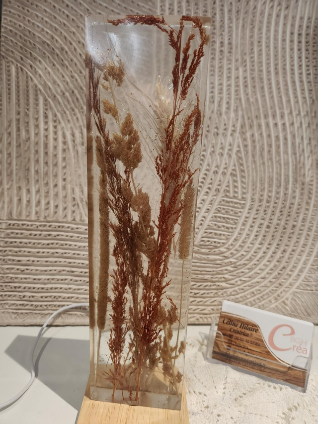 Lampe d'ambiance en résine avec fleurs séchées , épi, roseau