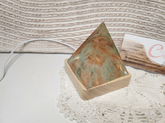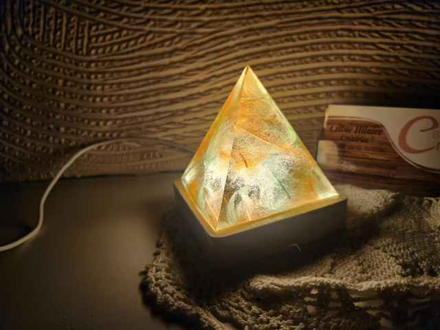 Lampe d'ambiance forme pyramide rempli de plume