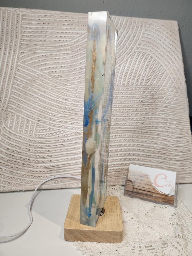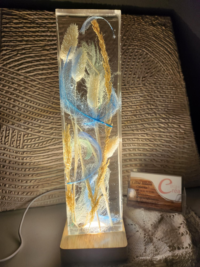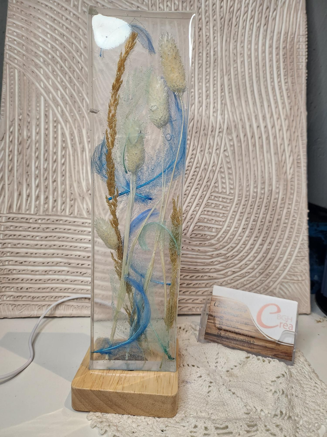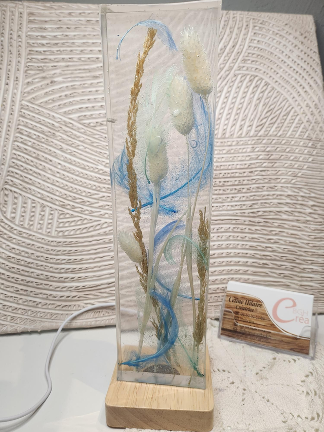 Lampe d'ambiance en résine avec fleurs séchées , épi, roseau