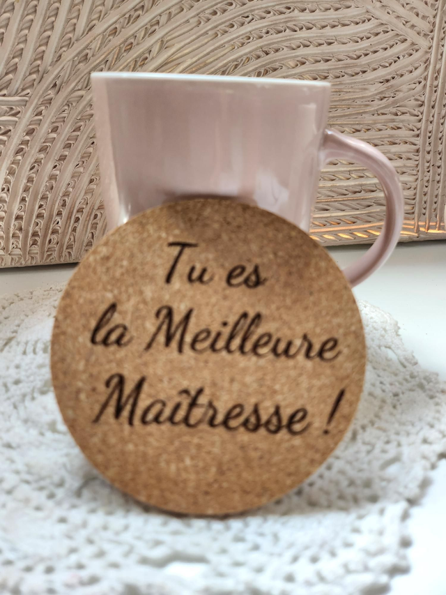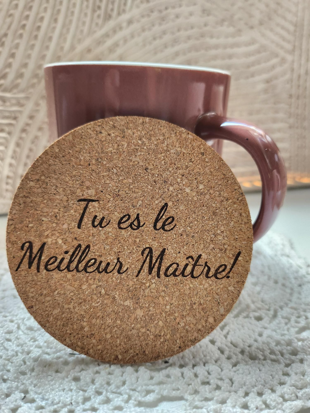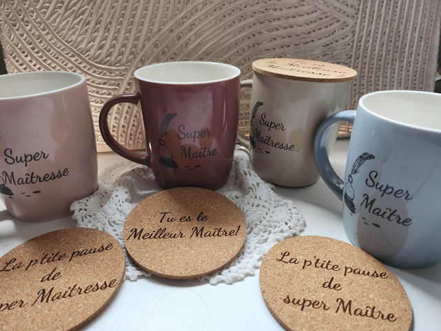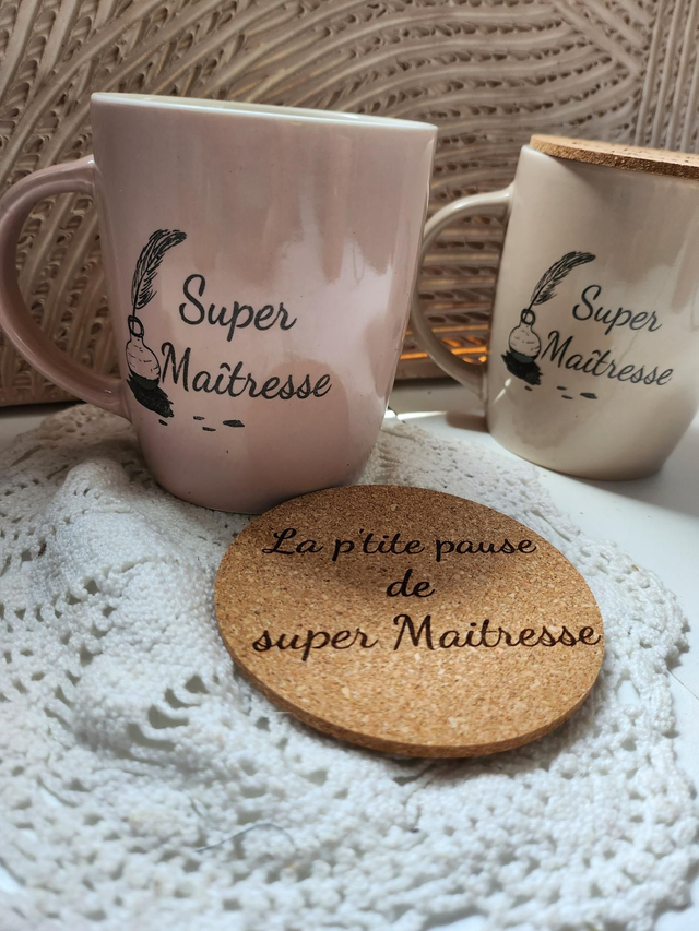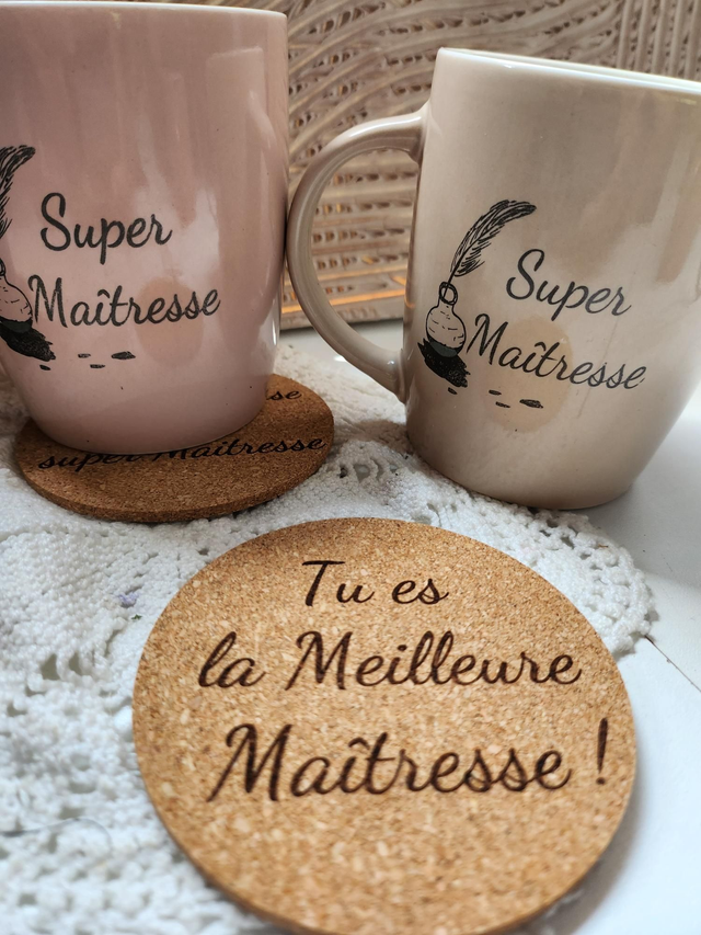 Mug pour Maîtresse ou Maître avec sous tasse en liège.