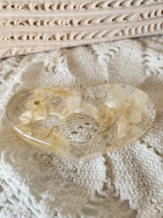 Bague de lecture fleurs séchées cœur