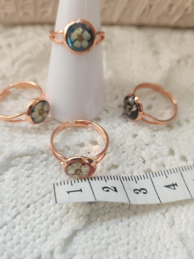 Bague fond noir avec fleur de sureau . Couleur cuivre