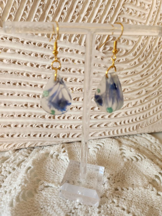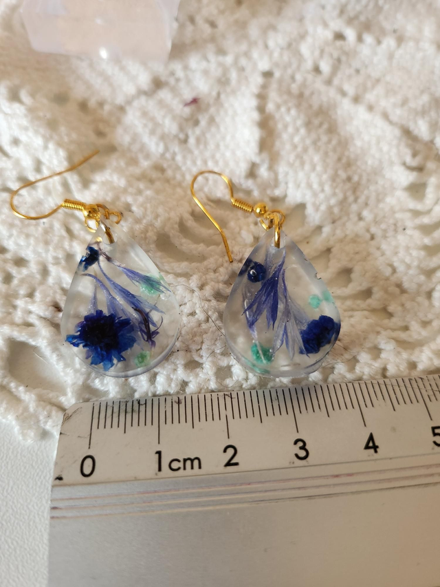 Boucles d'oreilles fleurs bleues résine