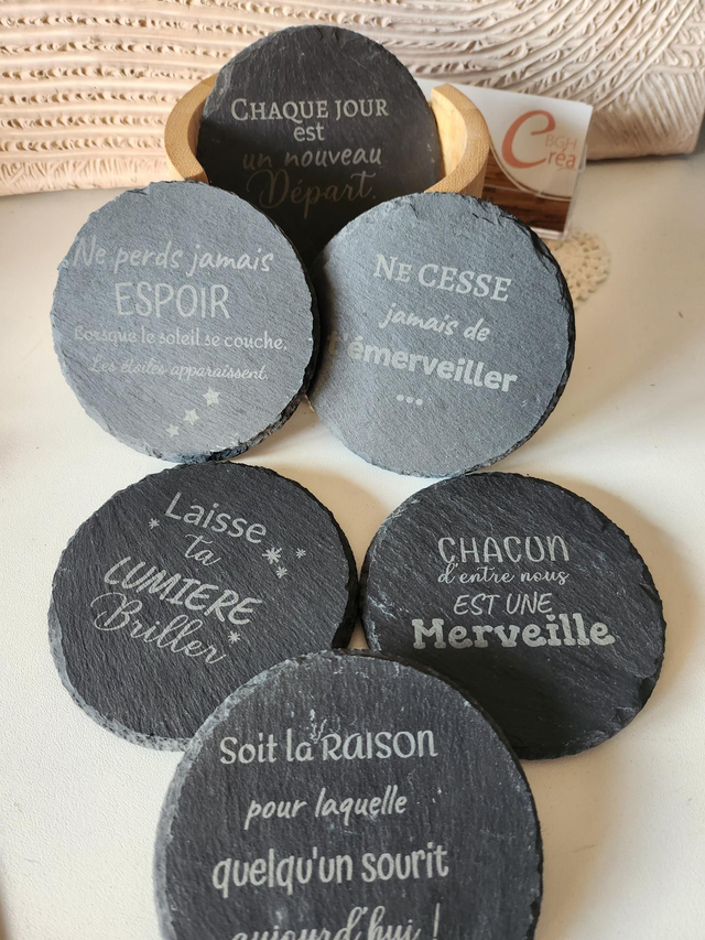 Ensemble de 6 sous verres en ardoise